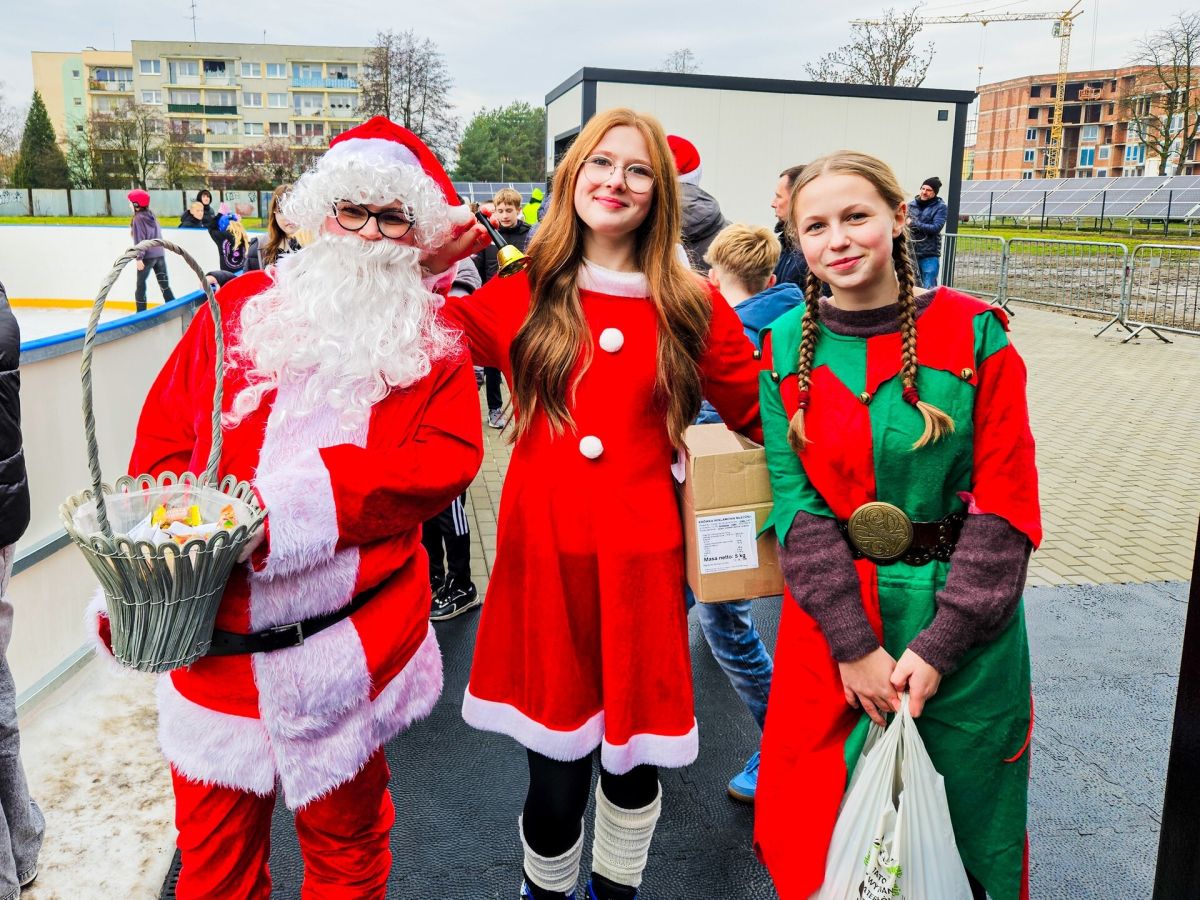 Chwilę po ceremonii Mikołaj i elfy wykonali rundę honorową na lodzie i następnie częstowali mieszkańców kluczborskimi słodkościami.