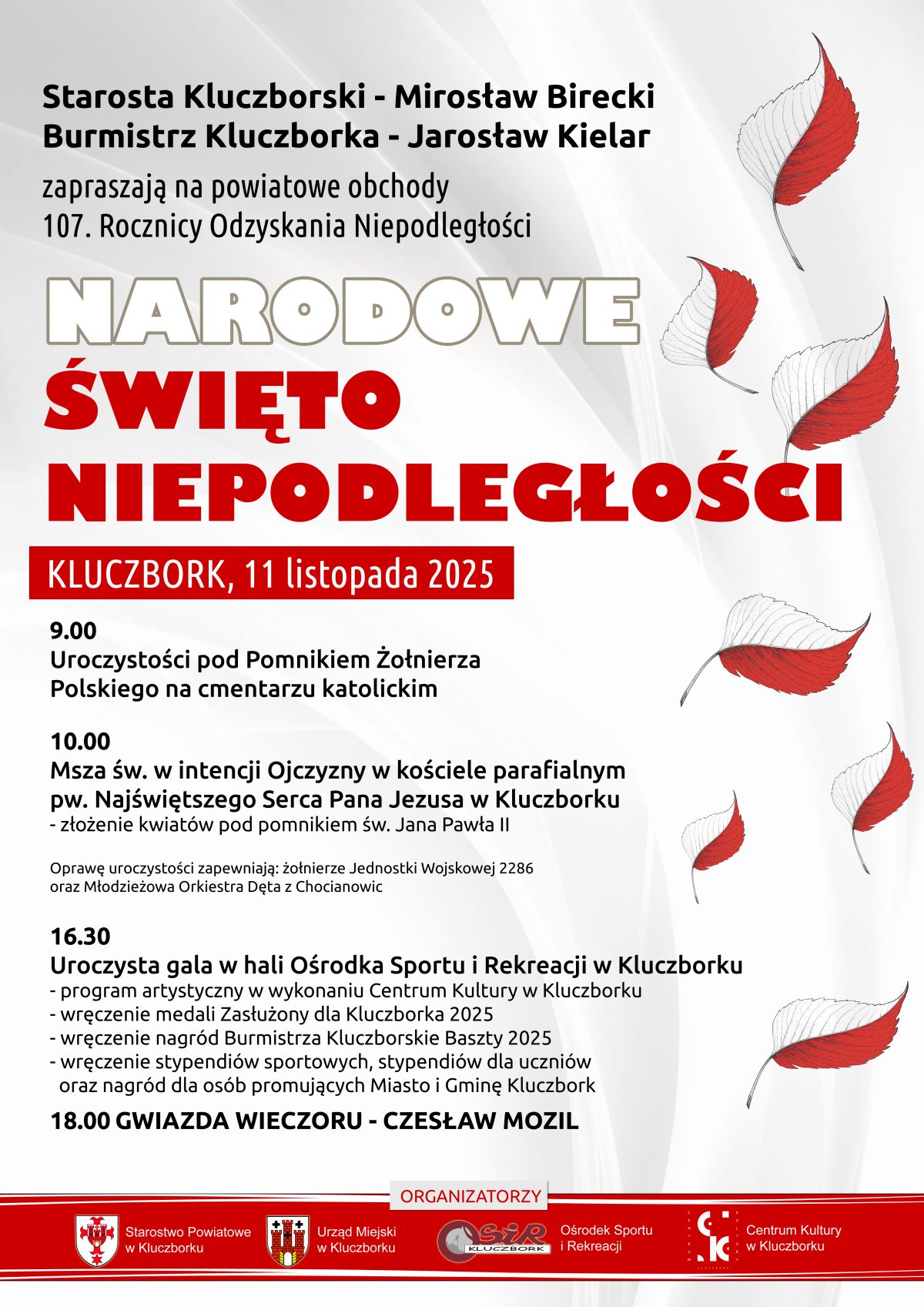Serdecznie zapraszamy mieszkańców Miasta i Gminy Kluczbork na powiatowe obchody Narodowego Święta Niepodległości, które odbędą się 11 listopada 2025 roku.