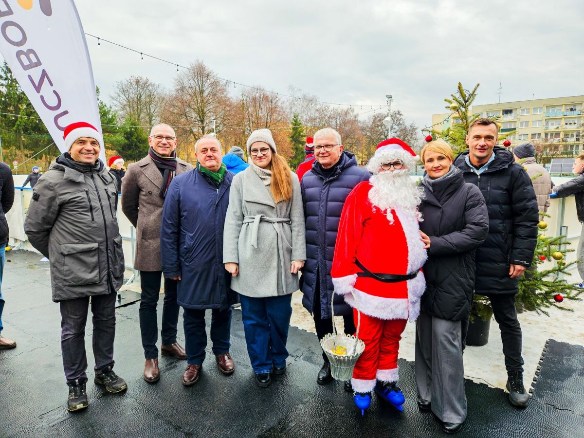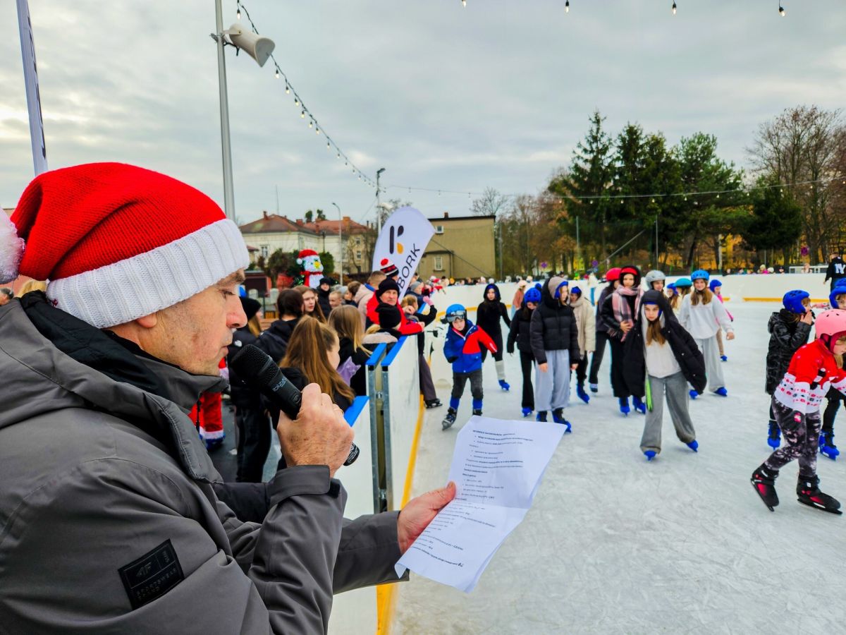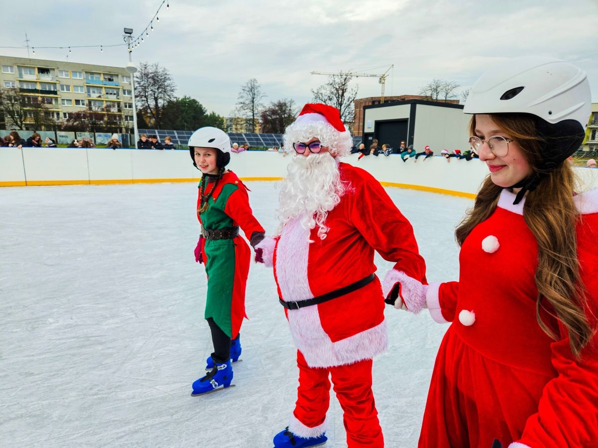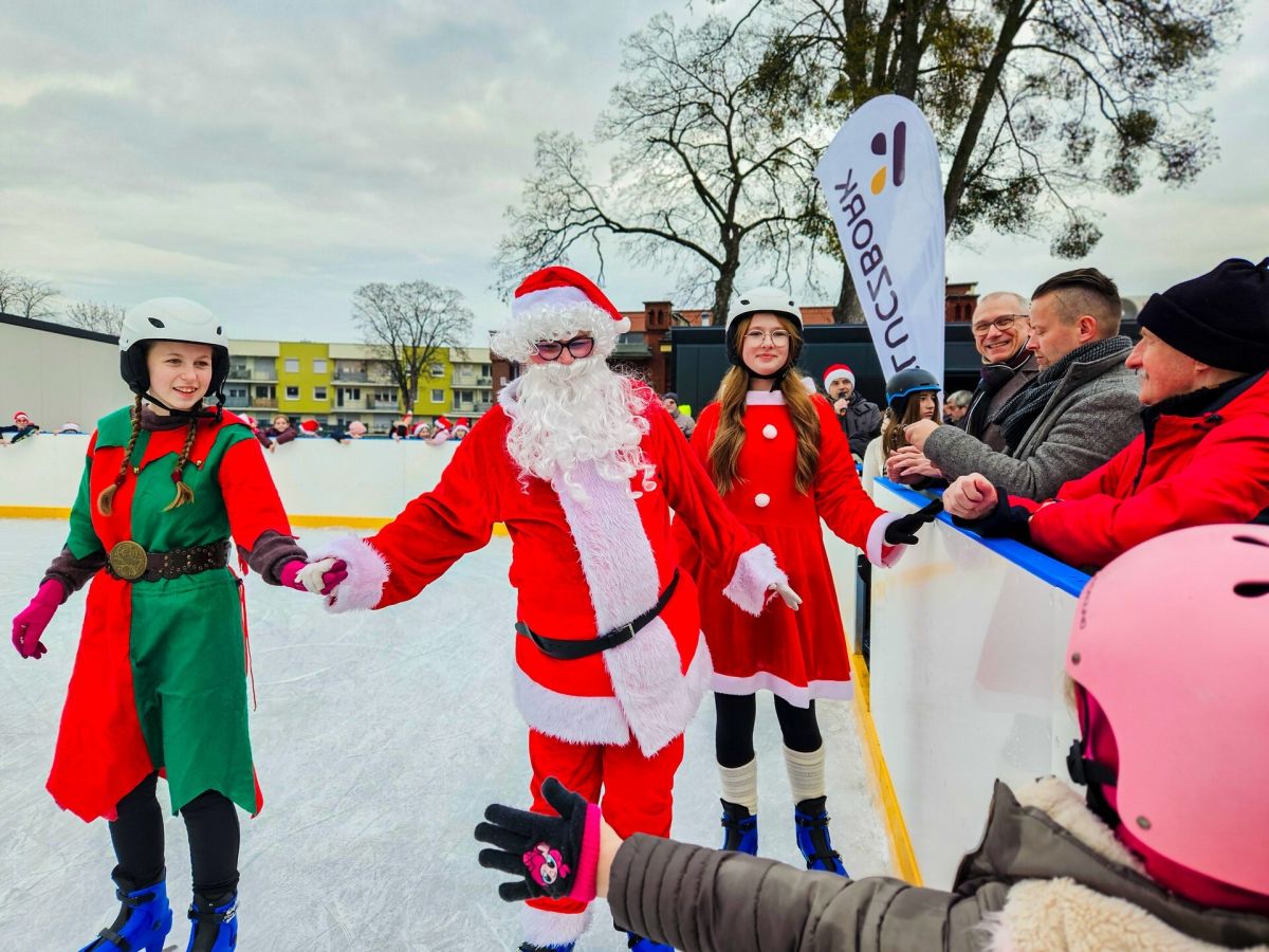 Po krótkim powitaniu i przemówieniu Burmistrza Jarosława Kielara, który podziękował wszystkim osobom zaangażowanym w realizację inwestycji oraz życzył bezpiecznej i radosnej jazdy na łyżwach, nastąpiło symboliczne przecięcie wstęgi! Wstęgę trzymali Burmistrz oraz Przewodniczący Rady Miejskiej, a przecięcia dokonali: Święty Mikołaj, elfy ze Szkoły Podstawowej nr 2 oraz przedstawiciele Młodzieżowej Rady Miejskiej.